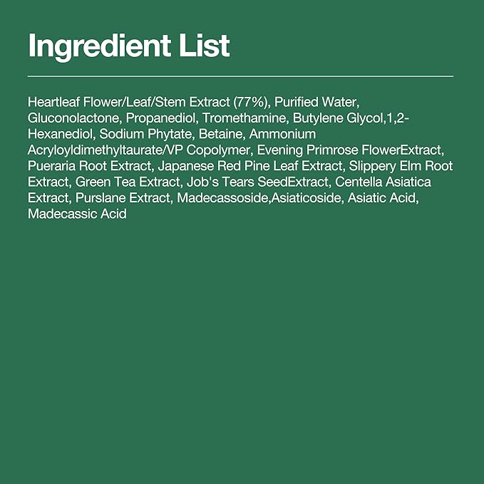 - Active Ingredients : PHA, Heartleaf extract