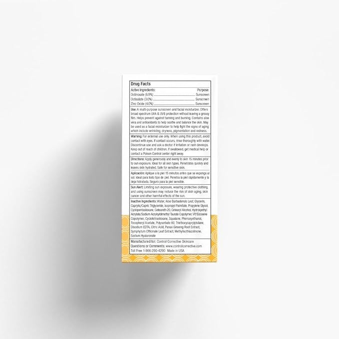 CONTROL CORRECTIVE Oil Free Sunscreen SPF 30 For Face & Neck, All Skin Types– Broad Spectrum UVA/UVB Protection + Lightweight Moisturizing Formula – 2.5 oz Non-Comedogenic