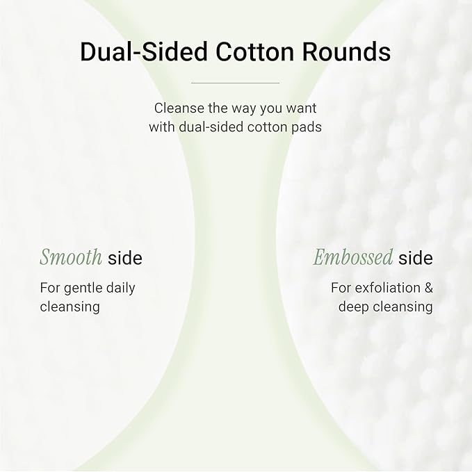 - GENTLE EXFOLIATION FOR GLASS SKIN: Double-sided cotton pads gently sweep away dead skin cells and impurities, helping reveal a smoother, radiant glow for visibly glass-like skin.