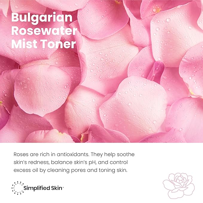 - USDA-Certified Organic Rose Water Spray for Face & Hair: Simplified Skin rosewater spray delivers soothing hydration with every spritz. Made from Bulgarian rose water, it refreshes and revitalizes the skin, hair, and body.