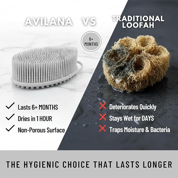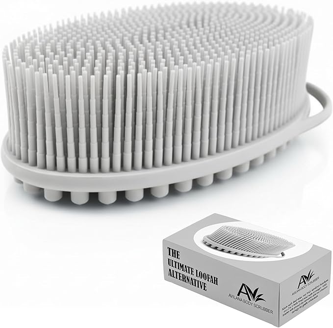 Silicone Body Scrubber for Shower - Gentle Exfoliating Back Scrubber with Soft Bristles - Avilana Premium Dual Sided Bath Brush Massage - Loofah Alternative for Sensitive Skin - Gift Women Men