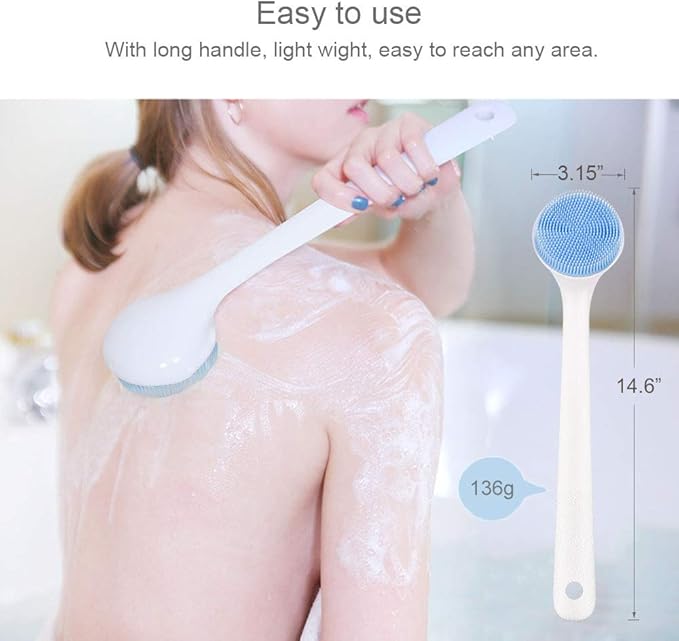 - 【Super soft bristles】Silicone bath body brush, soft texture, back scrubber for acne without hurting the skin, easy to clean and quick to dry, convenient daily use, great personal use or gift choice for men, women, kids.