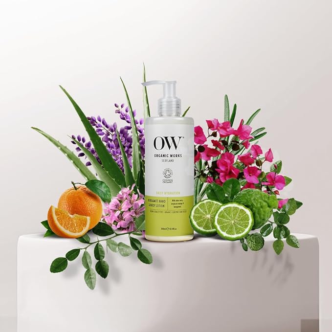 Organic Works Daily Hydration Hand and Body Lotion - Enriched with Vitamin E and C, Shea Butter Lotion for All Skin Types - Bergamot - 10.14 oz
