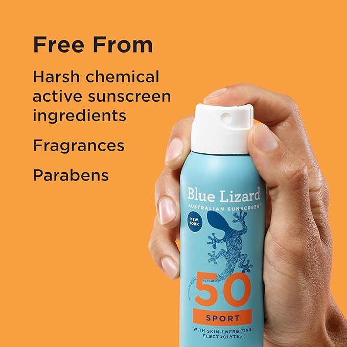 BLUE LIZARD Sport Mineral Sunscreen Spray SPF 50+, Dermatologist-Recommended Brand, Broad-Spectrum UVA/UVB Protection, Water-Resistant, Zinc Oxide Formula, Vegan, 5 fl oz