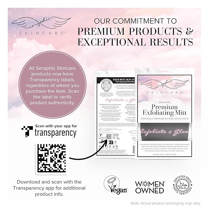 - INDULGE IN AN AT-HOME SPA EXPERIENCE – At Seraphic Skincare, we’re committed to offering premium exfoliating products at affordable prices. We invite you to immerse yourself in the luxurious experience of exfoliation and self-care at home by adding our Korean-style exfoliating mitts to your beauty routine for that glow you’ve been dreaming of!