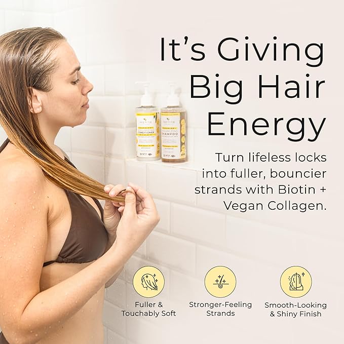 - FROM THIN TO THICK: Strengthening thin hair is easy with our volumizing shampoo and conditioner set for dry hair. Formulated to resist breakage with a vegan collagen thickener to boost weak hair.
