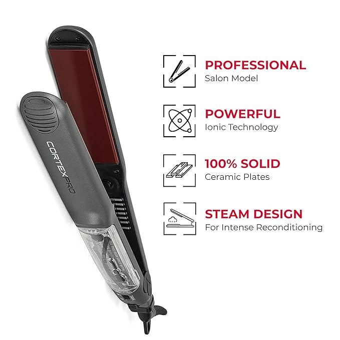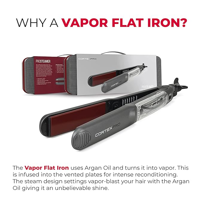 Cortex Professional Vapor Flat Iron - Vapor Mist Thermolon Ceramic Plates - Argan Infusion Steamliner - Professional Hair Straightener - with Argan Refill Bundle - 1.25’’ (Black)