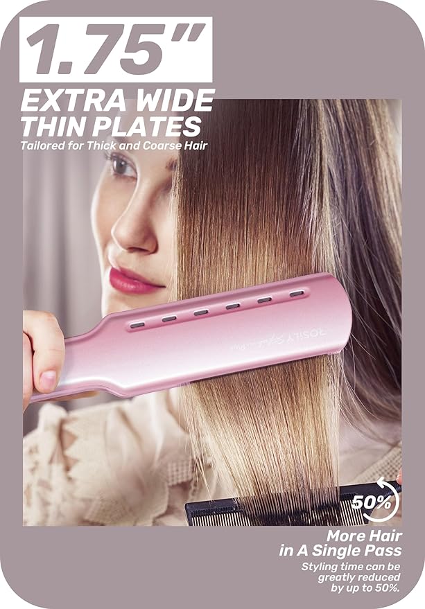 - 30s Instant Heat Up, Extra-Wide 1.75’’ Extra-Long 4.75’’ Plate for Short and Long Hair - The new advanced Metal Ceramic Heater (MCH) ensures a rise to 450°F in 30 seconds and provides continuous and stable temps throughout styling making it more efficient than PTC and Tourmaline straighteners. The extra-large plates straighten long hair faster than any other flat irons.