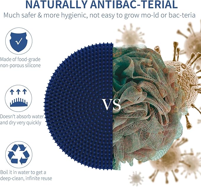 - MORE HYGIENIC OPTION: Unlike loofah, wash cloth and exfoliating sponge, BEAUTAIL body scrubber is made from non-porous, self-cleaning silicone, which doesn't absorb water, dries quickly, so it isnโt as susceptible to building up with unpleasant substances.