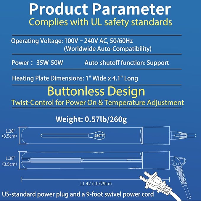 - đź’— Complies with UL safety standards & Features a 30-minute auto-shutoff function for safety. US-standard power plug and a 9-foot swivel power cord with Velcro strap and hanging hook.