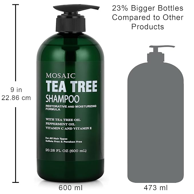- ALL NATURAL SHAMPOO AND CONDITIONER – Mosaic Tea Tree Oil restorative and moisturizing shampoo and conditioner set is infused with 100% Tea Tree Oil, Peppermint Oil, Rosemary Extract, Biotin, Vitamin C & Vitamin E.
