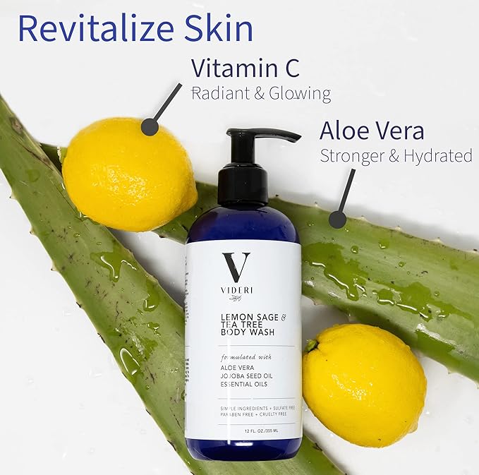 - 【Safe for Sensitive Skin 】- This perfect formula of ingredients delivers antioxidants like Vitamin C to the skin to help protect cells from oxidative stress, minimize appearance of damage and calm sensitive skin. Videri Lemon Sage Body Wash is safe for sensitive skin and is enriched with Tea Tree oil to help protect and soothe sensitive skin.