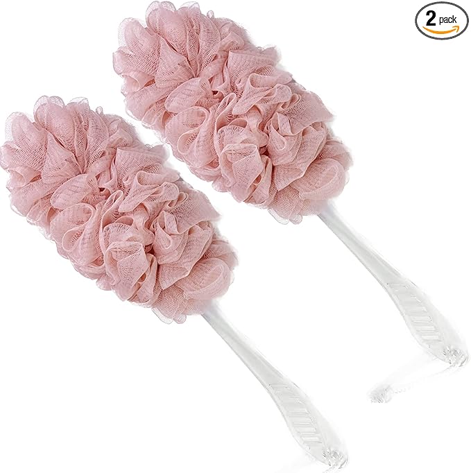 PPHAO - Back Loofah on a Stick for Men - Bath Brush Long Handle for Shower Elderly - Loofah Sponge for Women - Plastic Loofah - Bath Body Brush - Pink Loofah - 2Pack