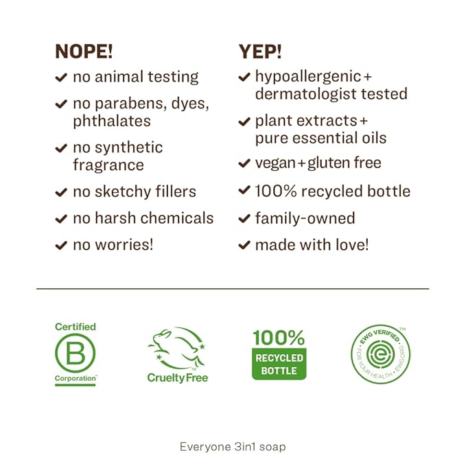 - CONTAINS: (12) 2 Ounce 100% Recycled Plastic Bottles of Everyone 3in1 Coconut and Lemon Soap.