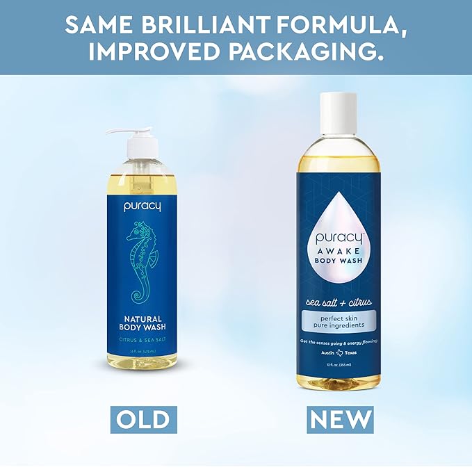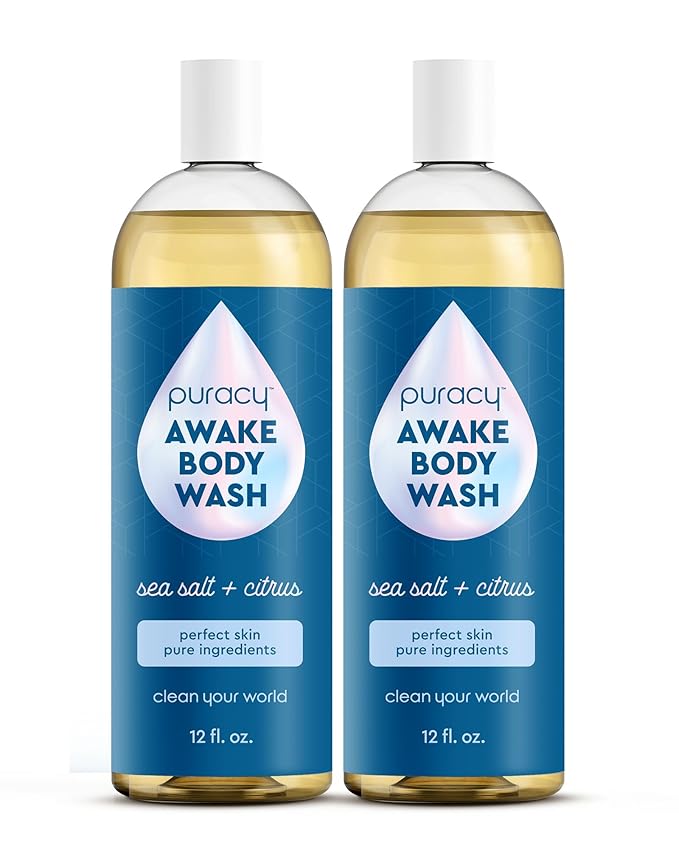 Puracy Body Wash, Natural Body Wash, 98.6% Pure Plant Ingredients, Moisturizing Shower Gel for Women Men Kids, Body Soap for Dry Sensitive Skin. Gently Scented with Citrus & Sea Salt, 12 Oz (2-Pack)