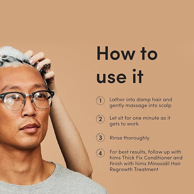 - For Fuller-Looking Hair: hims Thick Fix Shampoo is packed with saw palmetto to cleanse away excess sebum, helping new hair follicles grow strong