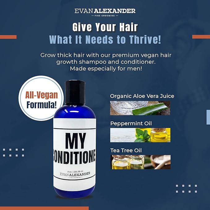 Evan Alexander Grooming MY Conditioner - Supports Hair Growth and Nourishes the Scalp with Peppermint Oil, Tea Tree Oil, Organic Aloe Vera - Vegan - 8 oz - Great Scent