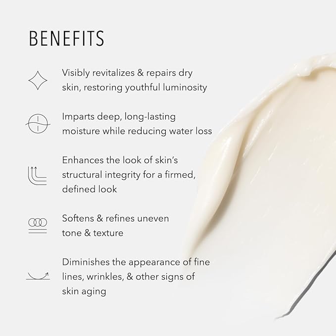 - Improve Skin Barrier: Visibly revitalizes and repairs dry skin, restoring youthful luminosity while enhancimg the look of skin’s structural integrity for a firmed, defined look. Use as the final step in your nighttime routine to lock in hydration and encourage cell turn-over while you sleep