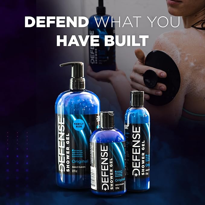 - CONVENIENT FAMILY SIZE | 32oz bottle of Defense Shower Gel is ideal for an active, healthy family. The dispensing pump prevents messes and spills while keeping water and moisture out. Donβt let skin irritations keep your family on the sidelines.