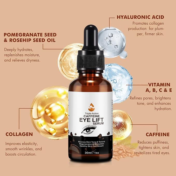 - All in One Caffeine eye serum. The most powerful in Moisturizing, anti-wrinkle, reduces dark circles and puffiness.