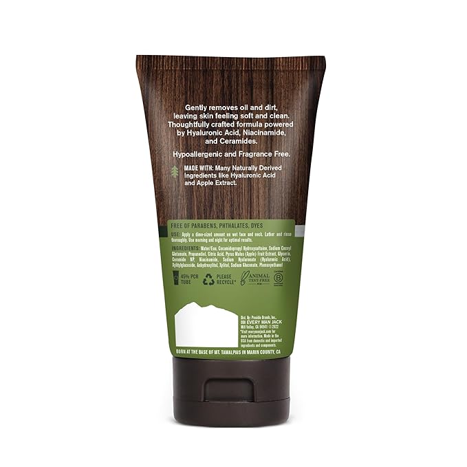 Every Man Jack Hydrating Face Wash for Men with Hyaluronic Acid & Niacinamide – Gently Removes Dirt and Oil, Revives Dry, Dull Skin – 5 fl oz (2 Pack)