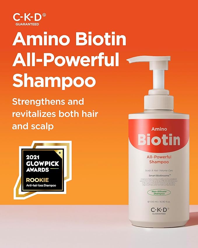 - NOURISHING DAILY SHAMPOO WITH BIOTIN & AMINO ACIDS: CKD Amino Biotin All-Powerful Shampoo promotes healthy hair growth and strengthens both scalp and hair. With biotin, amino acids, and peptides, it revitalizes damaged hair, enhances scalp elasticity, and improves volume for long-lasting results.