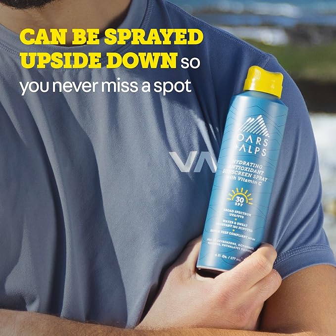Oars + Alps Sunscreen Spray for Face & Body Spray Sunscreen Infused with Vitamin C & Antioxidants, No White Residue, Water & Sweat Resistant, All Skin Types, Lightweight, Hydrating, SPF 30, 6 Oz, 1pk