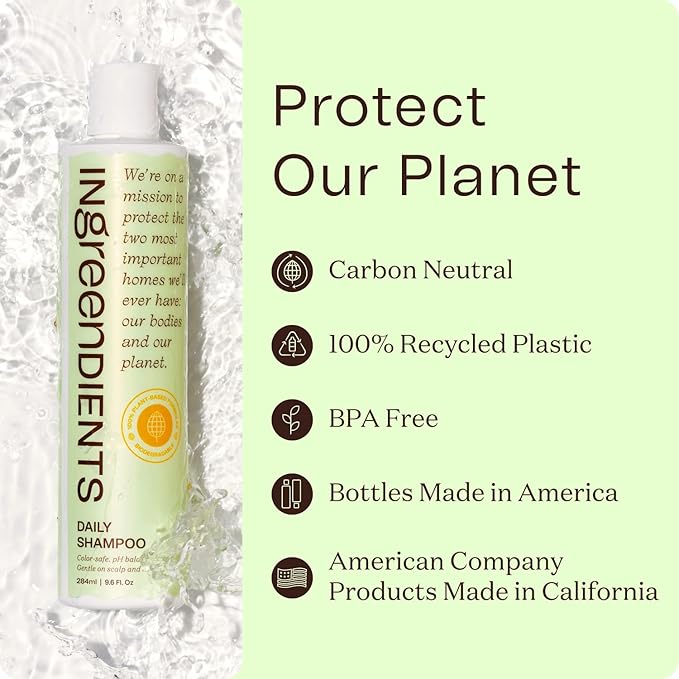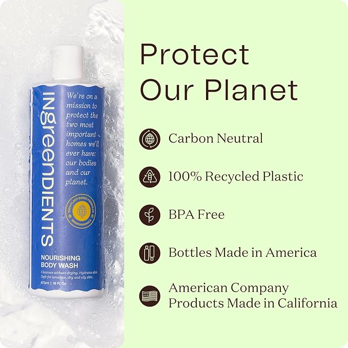 - 100% RECYCLED PLASTIC BOTTLES - Beauty industry is responsible for one third of the landfill in America. We create no virgin plastic and only use vegetable non-toxic ink to print and ship the product in 65% recycled cardboard boxes. Our products, including the bottles, are proudly made right here in the USA.