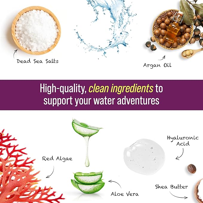 - MOISTURIZING LOTION FOR SWIMMERS: Formulated with premium ingredients such as aloe, vitamin E, red algae, and dead sea minerals for pre-swim chlorine skin protection and post-swim hydration