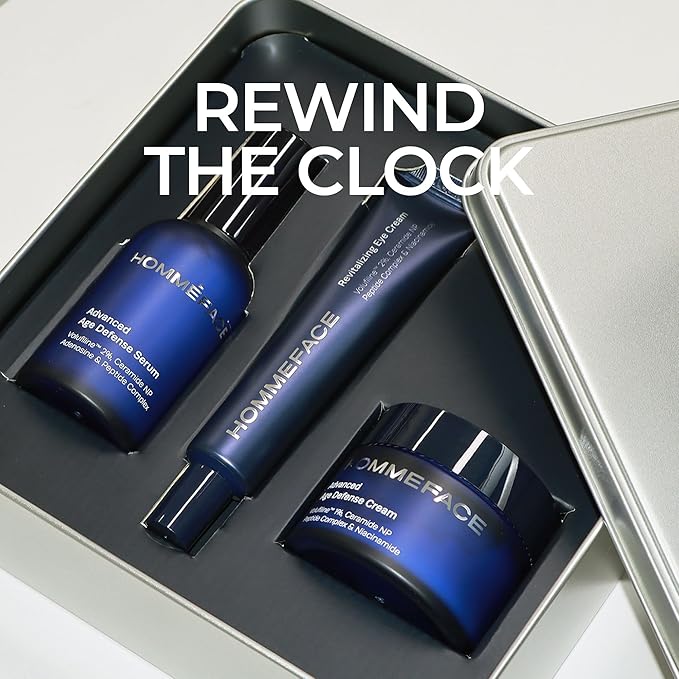HommeFace Men’s Advanced Age Defense Anti-Wrinkle Day & Night Face Cream - Korean Skincare Technology with Volufiline, Ceramide, Hyaluronic Acid, Peptides & Collagen, 1.76 oz