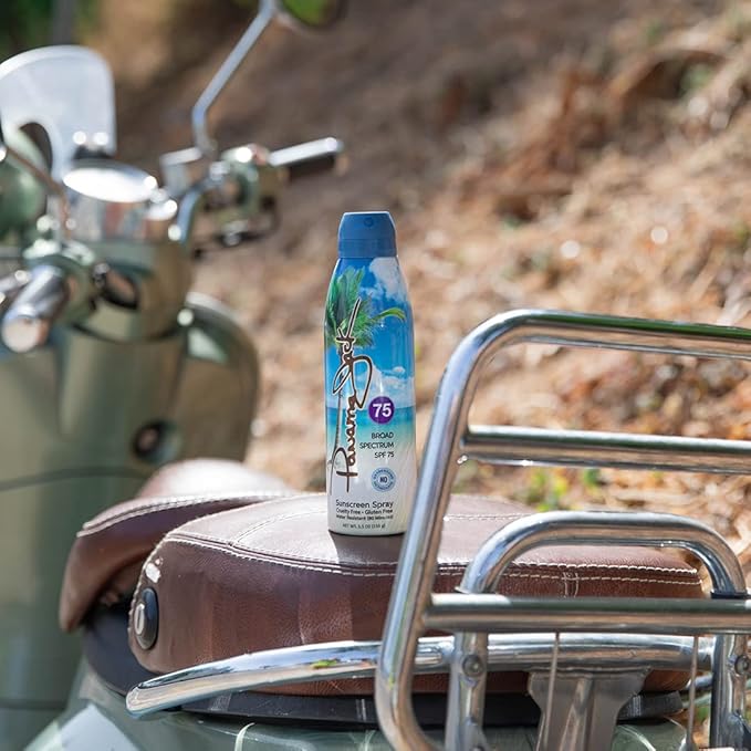 - MULTI-ACTION FORMULA: Panama Jack continuous sunscreen spray SPF 75 delicately combines antioxidants with moisturizing oils and a tropical fragrance in an oxybenzone and octinoxate free, broad spectrum UVA/UVB formula