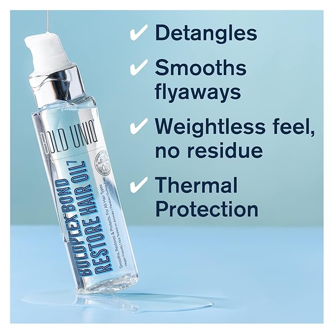 - LUXURIOUS INGREDIENTS THAT GET THE JOB DONE - A little really goes a long way, utilising a blend of precious oils including Argan, Avocado, Jojoba Seed and Camellia Oil - the BoldPlex Bond Restore Hair Oil will infuse deep hydration into Frizzy, Curly, Coarse, Dry, Damaged, Colored, Broken or Bleached Hair Types without leaving any heavy residue on the hair.