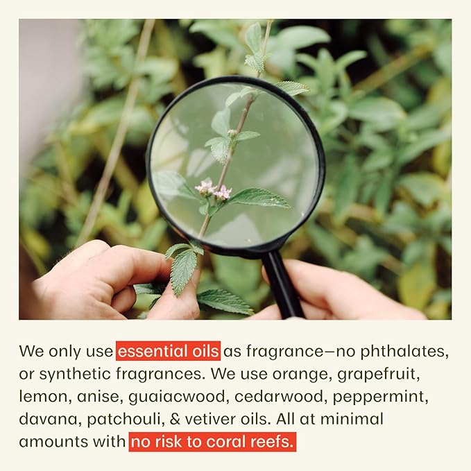- EFFECTIVE HEALTHY INGREDIENTS β No chemical sunscreen filters, benzene free, cruelty-free, vegan, PABA-free, GMO-free, paraben-free, no synthetic colors or unhealthy ingredients. No synthetic fragrances added, only a subtle citric scent from natural essential oils.