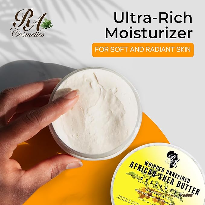 - Unscented Luxury: Indulge in the pure luxury of unscented shea butter. Free from artificial fragrances, RA Cosmetics ensures that you experience the true, natural essence of shea butter, making it perfect for those who prefer a fragrance-free option.