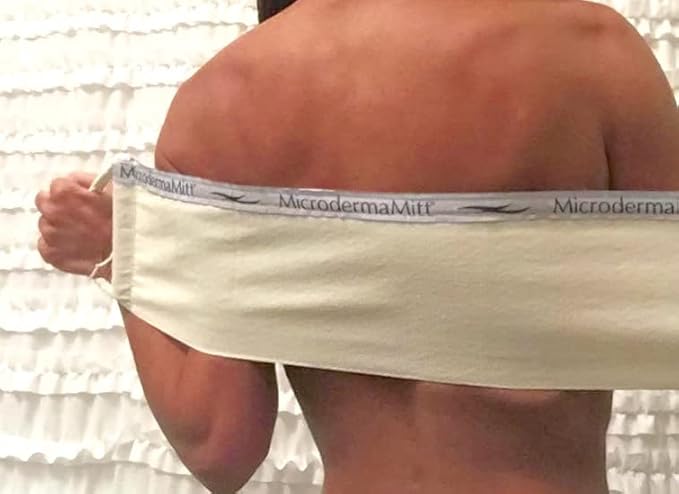 - EFFORTLESS FULL BACK EXFOLIATION - MicrodermaMitt's Back Scrubber lets you easily reach and exfoliate your entire back, eliminating dead and dry skin with just water, no additional products or soaking required.