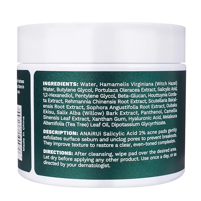 - SALICYLIC ACID PADS--Our Salicylic Acid 2% Face Pads is a powerful facial cleansing pad that is used to reduce oil production and minimize pores, clearing up and preventing future breakouts, reducing inflammation, and improving skin tone. Best for mild acne blackheads and whiteheads prevent.Fit for teens, women & men.