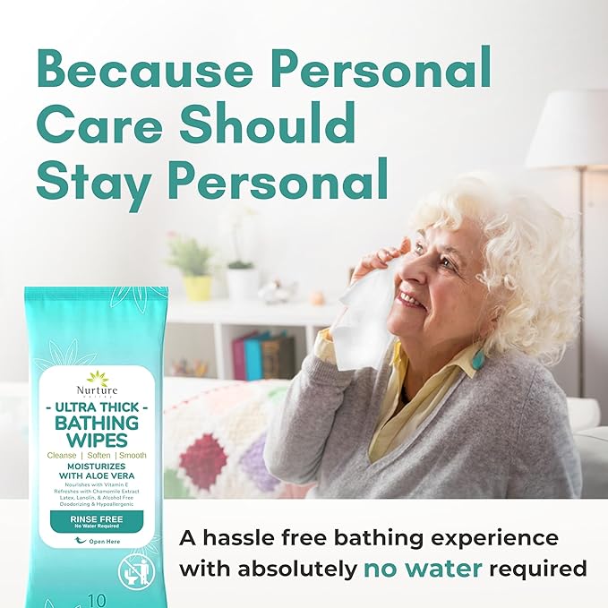 Nurture XL Ultra Thick Body Wipes for Adults w/Aloe | 40 Extra Large Disposable Cloth Wet Cleansing No Rinse Bathing Washcloths, Waterless Shower | Bath Wipe for Women, Men & Elderly
