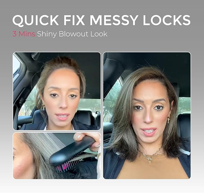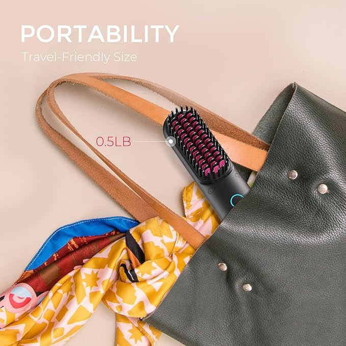 - MINI CORDLESS DESIGN, GRAB AND GO: Weighing only 234g, this straightening brush is designed for ease of use and portability. The cordless feature means you can use it anywhere without worrying about finding an outlet or dealing with a tangled cord. Its compact and lightweight design makes it easy to bring on the go, so you can always look your best. Please note: please remove anti-start plug before use.