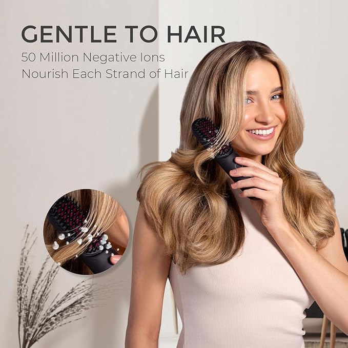 - IONIC FOR FRIZZ-FREE RESULTS: This straightener brush releases 50 million negative ions during the straightening process, reducing static and frizz in your hair. The negative ions work by neutralizing positive ions, which are responsible for causing static and frizz, for achieving a smooth, shiny, and frizz-free look without the need for harsh chemicals or excessive heat.