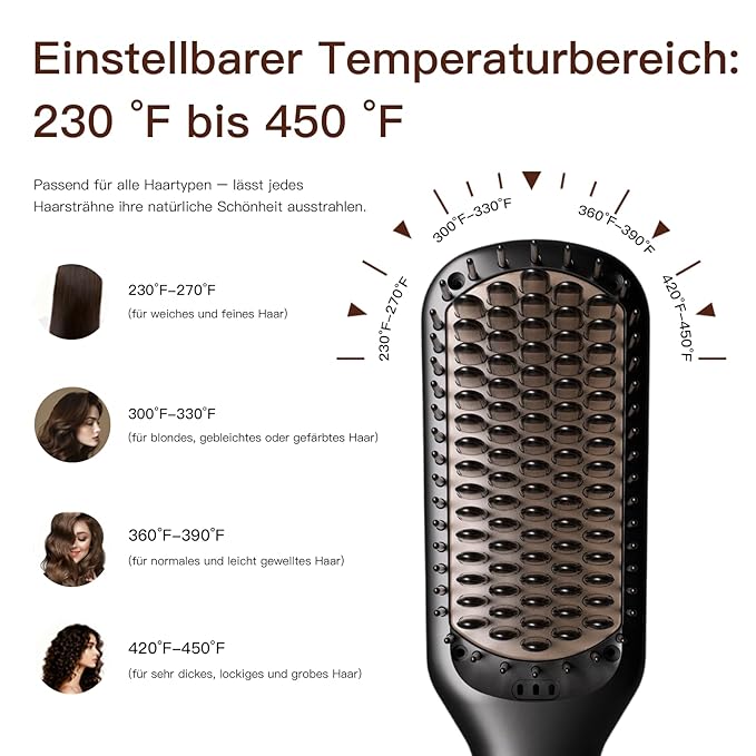 - LOOK BETTER IN MINUTES--Updated 2025 brush. uses two MCH ceramic heating units (vs. PTC or just one MCH in other brands) for fast and accurate temperature control up tol 450 degrees fhrenheit. Get lustrous, smooth and frizz-free in minutes.