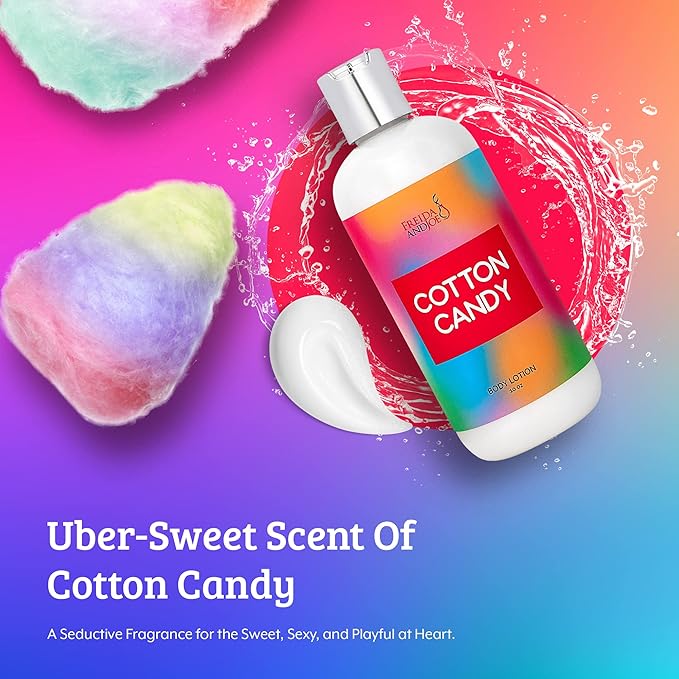 - LASTING SCENT: Our Cotton Candy scent transports you to a playful fantasy for a sexy, out-of-body experience. With Frieda & Joe scented body lotions, you get a lasting scent that lightly lingers on the skin all day. They're never overpowering or overwhelming like your typical fragrance.