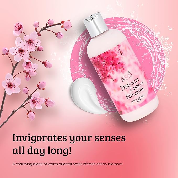 - LASTING SCENT: Our Japanese Cherry Blossom scent transports you to a remote Japanese garden for a romantic, out-of-body experience. With Frieda & Joe scented body lotions, you get a lasting scent that lightly lingers on the skin all day. They're never overpowering or overwhelming like your typical fragrance.