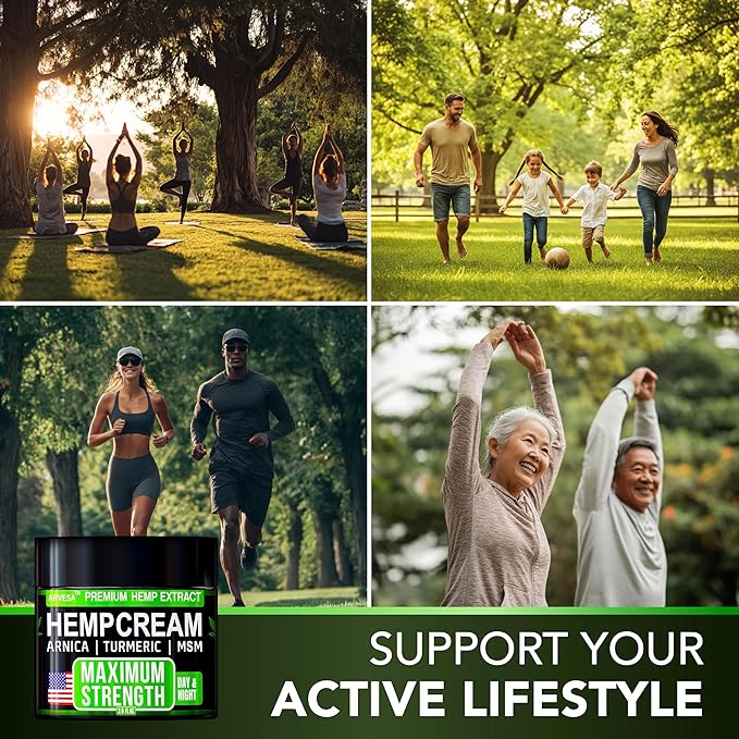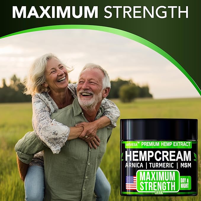Hemp Cream - Maximum Strength - Natural Hemp Oil Extract Gel Rub with MSM - Glucosamine - Arnica - Turmeric - Maximum Strength - Formulated in USA - 3.9 oz