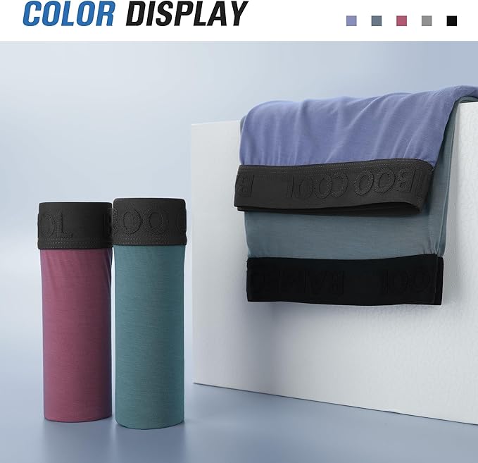 BAMBOO COOL Men's Ultra Breathable Underwear,No Riding Up Boxer Briefs with ComfortFlexible Waistband,Multipack