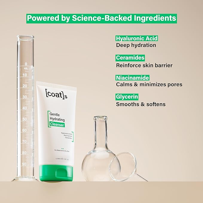 COATS Gentle Hydrating Cleanser [5oz] – Moisturizing Face Wash w/Hyaluronic Acid – Preppy Skincare- Fragrance-Free, Vegan, Clean Skincare for Teens, Combo to Dry Skin - 30 Day Supply