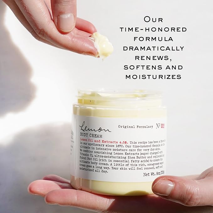 - LEMON BODY CREAM with Lemon Extract, Vitamin C, Kukui Nut Butter, and Shea Butter absorbs quickly and leaves skin soft without any residue or stickiness. Ideal as a deep treatment body lotion.