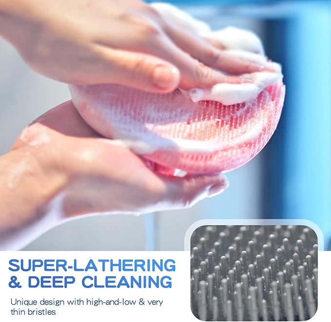 - 【Super Lathering & Deep Cleaning Bath Glove】 Unique design with high-and-low and very thin bristles to increase huge lathering power and helps you clean your skin even to pores. Built with one hand band and three finger bands to fit your palm. Anti-slip lines in front of each finger band to prevent the brush from slipping off.