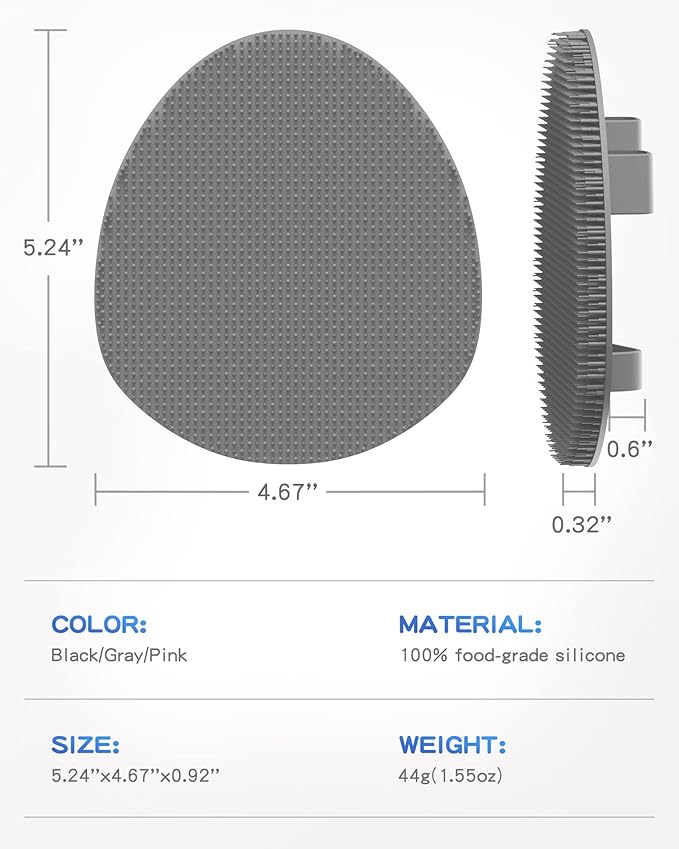 Manmihealth Silicone Back Scrubber(Thick Bristles) & Soft Bath Glove Set, Super-Exfoliating Body Scrubber & Super-Lathering Shower Brush Combination, with a Free Hook.(Gray)