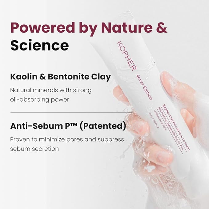 Kopher Clay Prime Pack to Foam [4ever Edition] Facial Cleanser: Hydrating & Purifying Cleanser for Sensitive Skin - Makeup Remover, pH Balanced, Korean Skincare (2.7 fl.oz.)