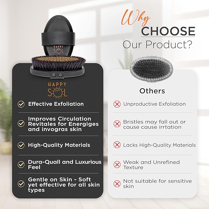 - GLOWING SKIN - dry brushing body brush is known for the benefits of soft, smooth and glowing skin. It exfoliates your dead skin cells so your cell turn over is stimulated.